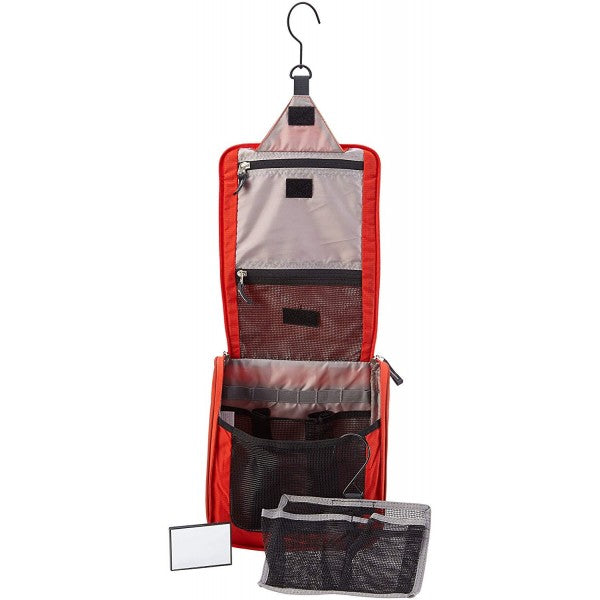 The Wash Center II Toiletry Bag by Deuter scores with sophisticated inner life and removable mesh pocket. The good piece offers enough space to pack shampoo, face cream, toothbrush and toothpaste, razor and shaving cream without any problems. The many pockets help to stow away the hygiene articles useful. The removable mirror is just as handy as the big hook to hang the bag.