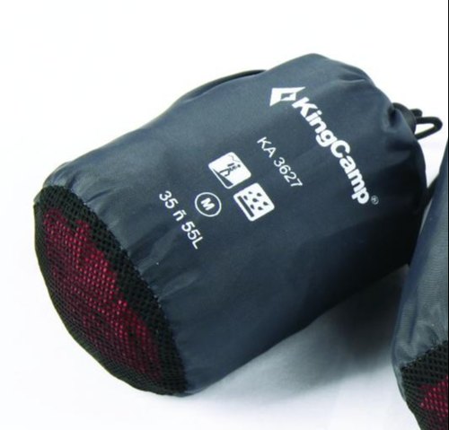KingCamp KA3627 Rain Cover M-35-55L OrangeLightweight Waterproof Water Repellent Ripstop Backpack Rain Cover with Small Carry Pouch for Traveling, Hiking, Camping Compact, 35-55LSELLING POINTS:DURABLE TO USE: This backpack rain cover is made of rip-stop polyester with PU coating, which makes it very durable to use for long time.WATERPROOF AND WATER REPELLENT: Water-resistant rip-stop polyester as the fabric can quickly slide water aside before water has a chance to penetrate it, which can protect the whole backpack from rain, water, dust and other damaged.LIGHTWEIGHT AND PORTABLE: It is lightweight and portable to take along and store conveniently.ELASTIC STRING ON THE BOTTOM: With elastic design on the bottom design, it is able to adjust the size according to different backpacks and easy to put on.Compact after folded: Come with a small carry pouch, this rain cover is compact enough after folded to save space when you put it into your backpack.SPECIFICATION:Material: 100%polyester, Ripstop, W/R, W/PLiner: PU Coating Product Size:31.5×22.5cm/12.4×8.9inches Package Size:12×8.5×8.5cm/4.7×2.8×2.8inchesVolume: 35-55L Weight:94g/0.16lbs BRAND INTRODUCTION:KingCamp offers a wide range of products covering outdoor activities of camping,hiking,travel,and leisure.Each product design is based on the specific requirements of our clients and the comments from our testers who use the products in extreme outdoor conditions.PRODUCT DESCRIPTION:The item is a simple and practical waterproof dustproof backpack rain cover protector, it can well protect your backpack from rain, water, dust and other damaged while traveling, hiking, camping or doing other outdoor sports. When not in use, you can fold the rain cover into a small carry pouch and put into your backpack for convenient to carry.PACKAGE INCLUDES:1 × Rain Cover1 × Carry Pouch