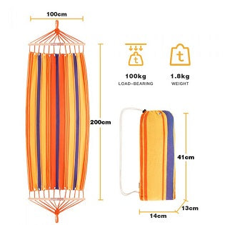 Foldable solid wooden spreader bar keeps the hammock open and flat, no squeezed feeling. Set size 78.74 × 39.37 inches, support weight 100 kg, enough for an adult and a child.