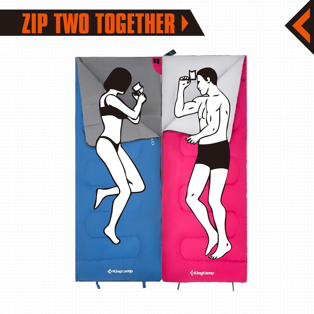 The KingCamp Oxygen Sleeping Bag is an obvious selection for your sleeping satisfaction at summer camp. It is crafted with high quality material. Convert this bag into a blanket or quilt after you unzip it all the way. Light weight, portable and space-saving. The bag is easy to roll up into the sturdy sack, which make your camping experience easy and convenient. Stay warm and comfy on your cool camp nights. Two sleeping bag can be zipped together to make a two person sleeping bag. You can also convert this bag into a blanket or quilt after you unzip it all the way.