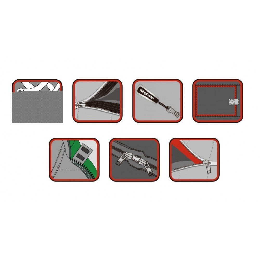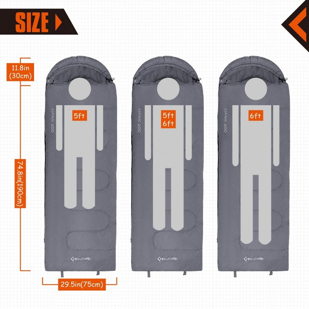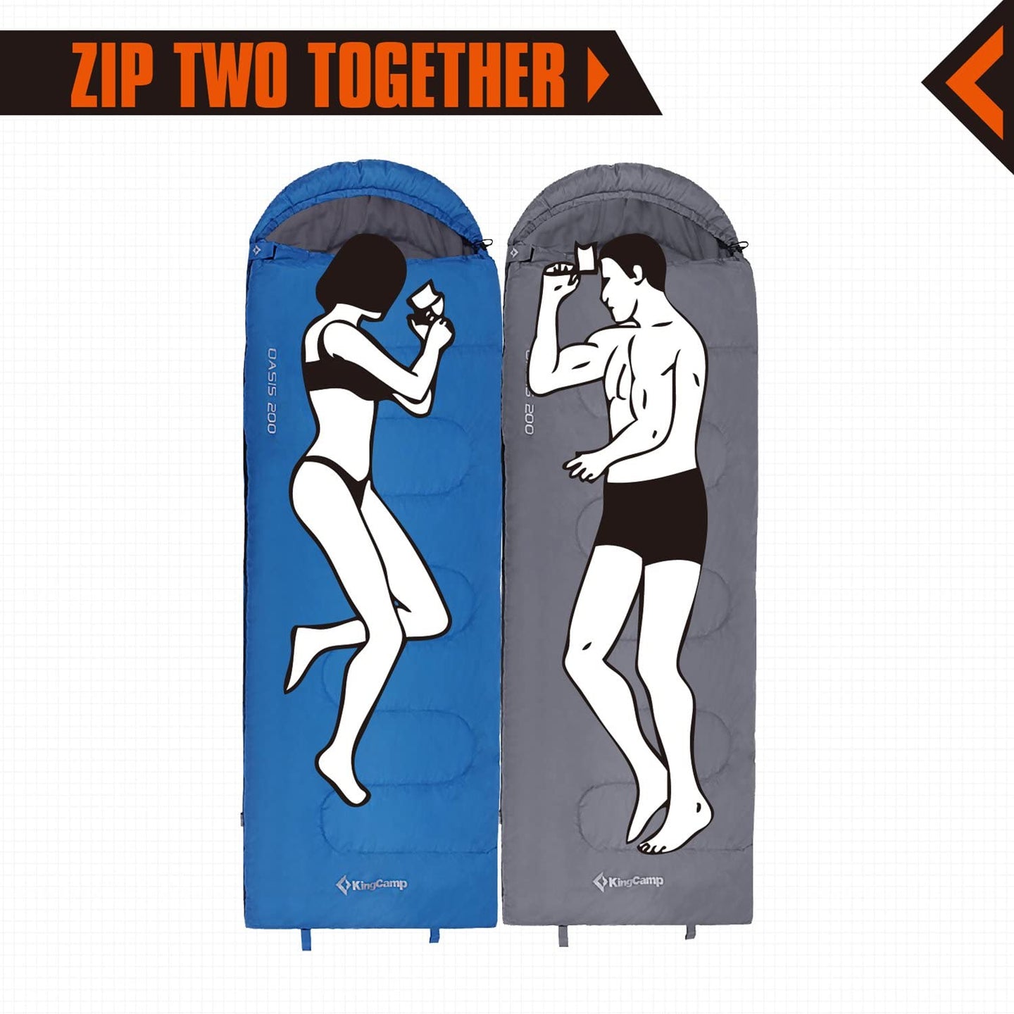 The KingCamp Oasis 200 envelope sleeping bag with hood for camping, backpacking has higher quality materials and construction than most bags in its price category. A left and a right sleeping bag can be zipped together to make a double and incorporates comfort sleep system. Two straps at the bottom of sleeping bag are convenient to hang if needed. With two-way separating zip on one side, it will be very convenient for you to get in and out. The zipper baffle will let the zipper goes well. The outer fabric of this sleeping bag is waterproof.