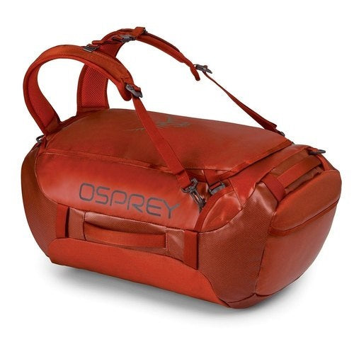 Osprey Transporter 40L Duffel Bag TRANSPORTER 40EXPEDITION DUFFELThe Transporter 40 is built with ruggedly dependable, weather resistant fabrics. Not just a duffel, it is comfortable to carry, and perfect as a companion on a short trip or for storing your gear.Summary The Osprey Transporter 40 Litre Duffel Bag is cabin size, and as with all bags from the Transporter range is designed as a serious gear haul bag for off-road adventures. 40L is generous for a cabin size bag, you could squeeze enough gear in for 2-5 nights or more if you’re a concise packer! This bag is suited to car or boat trips as its soft and can be ‘shoved’ out of the way as needed. The ability to throw it on your back gives you the freedom to travel further afield and be flexible throughout your travels. Key features Cabin size:40L capacity is ideal for 2-5 days plus Wide U-shaped panel access to the main compartment Large front handle can convert into backpack style straps offering carrying options Dual sided TPU coating inside and out, burly hardware, stiffened main body fabric with protective accent ribs, overlapping zipper rain flaps and design details protect your gear from external elements Removable shoulder strap includedb Multiple webbing attachment points to attach additional gear to the exterior.