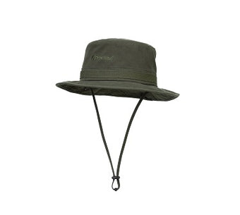 Organic cotton canvas boonie hat with webbing gear loops and removable chin string.